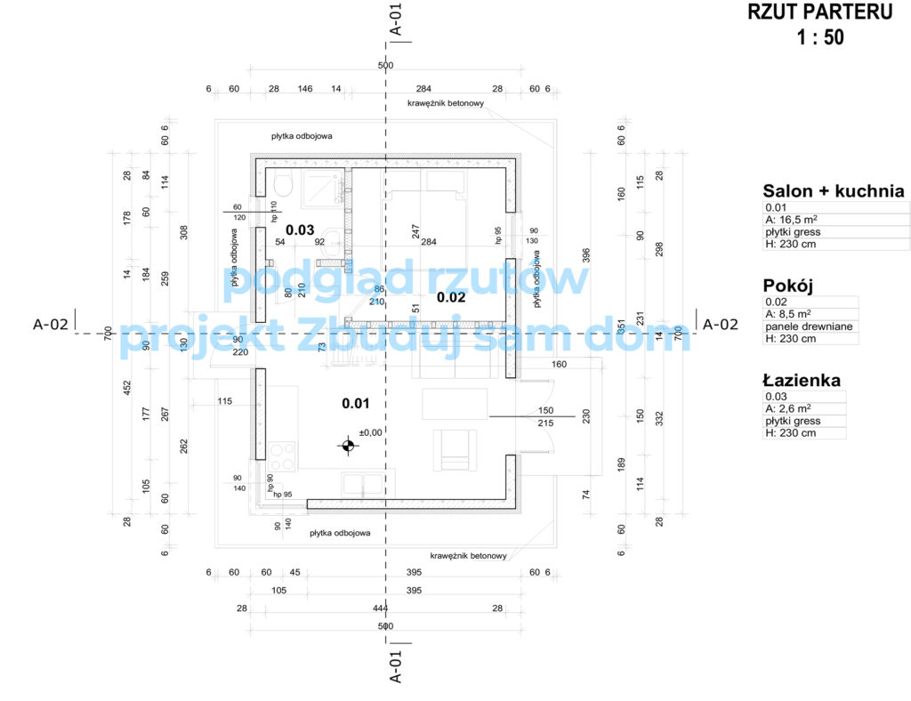 Nasz projekt świetnie sprawdzi się także jako domek letniskowy, mieszkalny całoroczny lub inwestycja na wynajem. Do postawienia budynku o podstawie 35m2 nie potrzebujemy dużej działki – jej minimalne wymiary to 500m2.