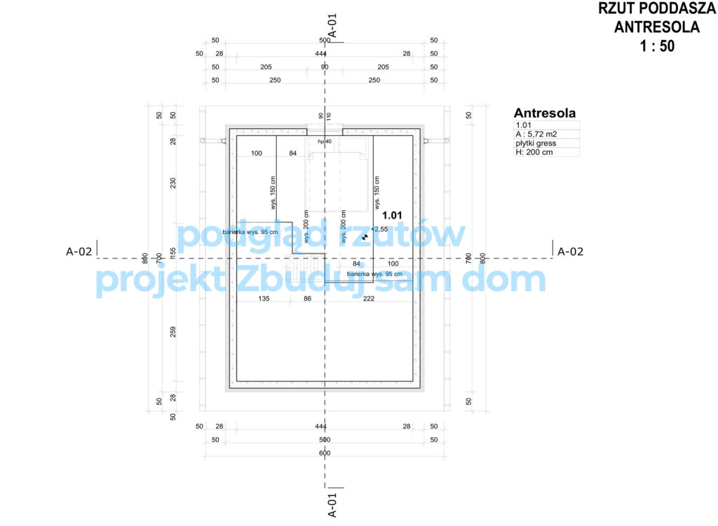 - Antresola: 5,72m2 (nie liczy się skosów)