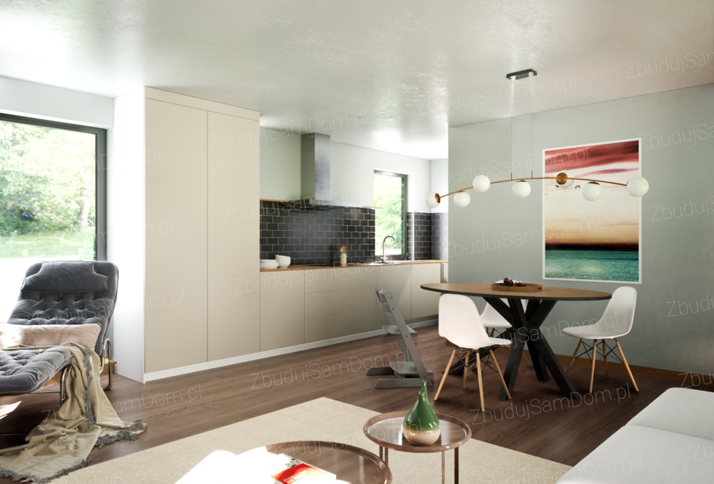 Dom 70m2 to owoc kilkumiesięcznej pracy w stworzeniu instrukcji oraz publikacji z wiedzą dzięki której budowa stanie się bardzo prosta nawet dla osób które nigdy nie budowały domów. Projekt dostępny jest w dwóch wersjach: zwykła oraz odbicie lustrzane. Jest to najprostszy w budowie dom szkieletowy, prosta bryła dzięki której budowa tego budynku nie sprawi problemu osobom które chcą rozpocząć budowę samemu. Dodatkowo taki projekt wraz z instrukcją budowy i listą materiałów może być dużym uproszczeniem dla ekip stawiających domy na zlecenie.
